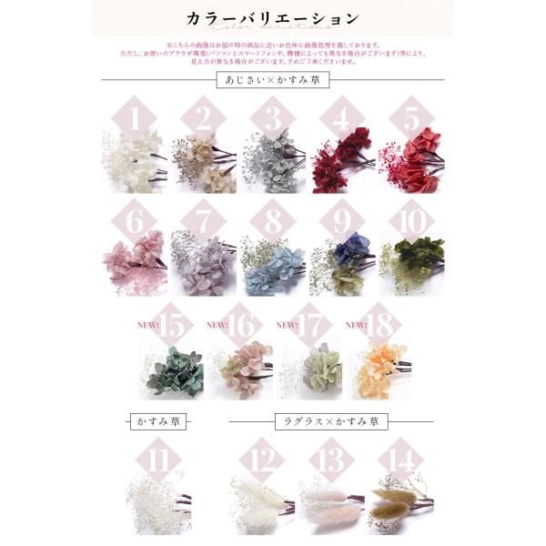 使い方自由自在♪4本セットの あじさいやカスミソウ、ラグラスなどの組み合わせです。