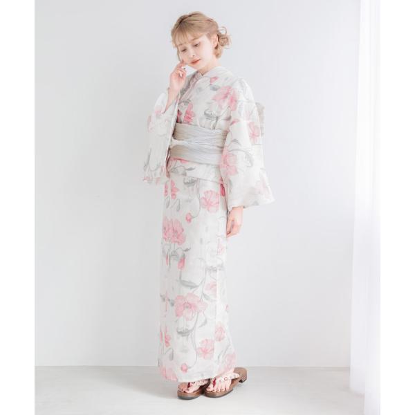 レディース 浴衣 セット 簡単(ゆかた・しわ兵児帯・下駄・着付け本・腰ひも)綿 ピンク 白 水彩 花柄 10代 20代 30代 2025年