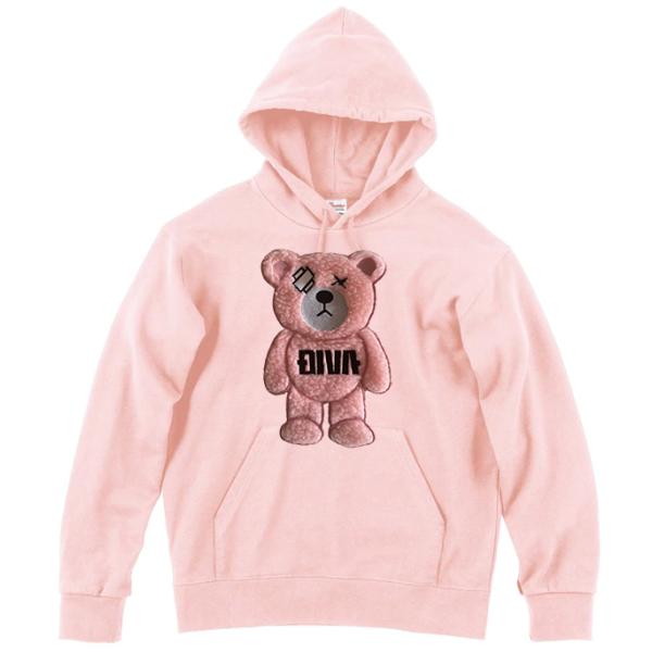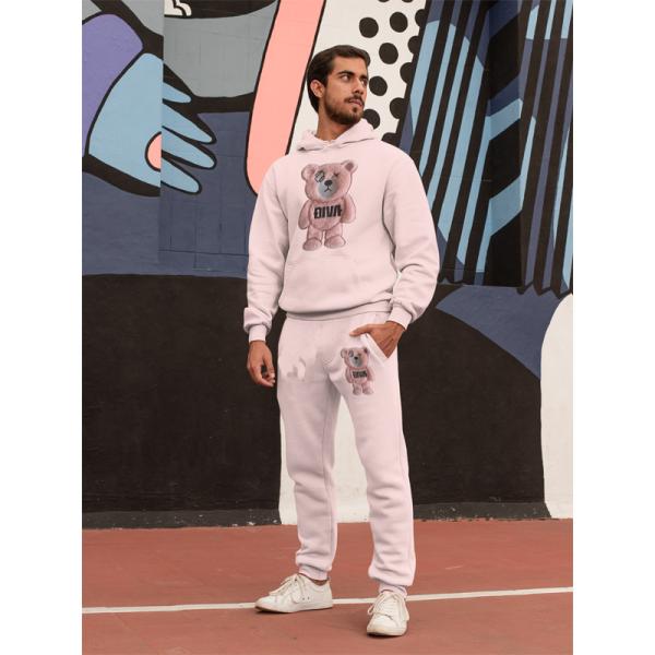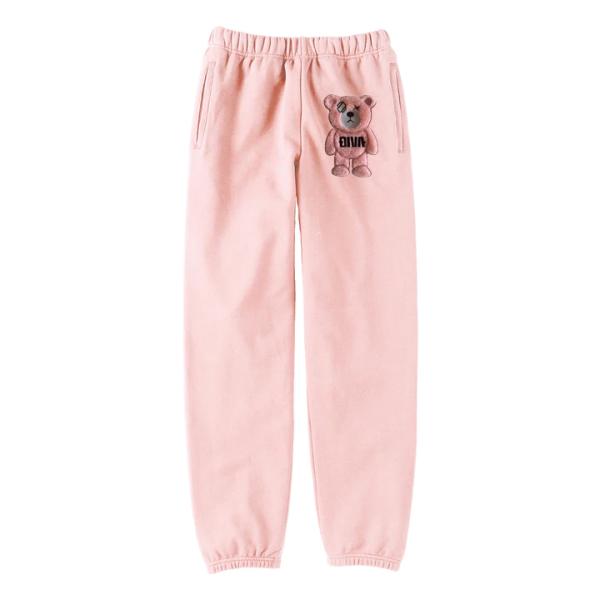 もこもこ クマ ワッペン刺繍 セットアップ 3D刺繍 ピンク 男性 女性 トラックスーツ 上下 スウェット パーカーとジョガーパンツ 【DIVAオリジナル刺繍】
