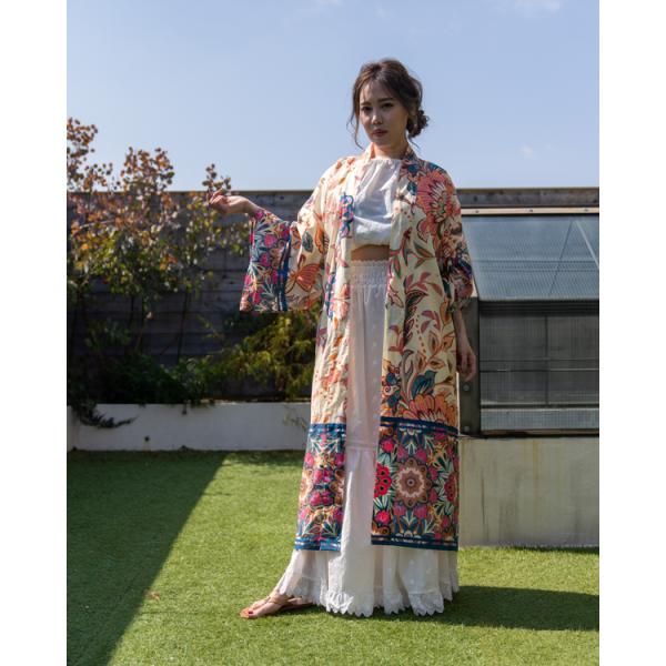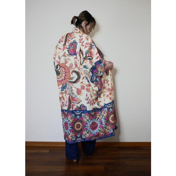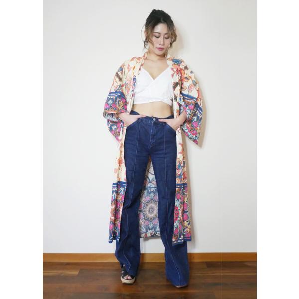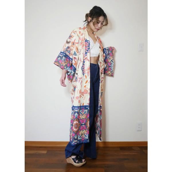 日本製 ガウン ルームウェア 着物 カバーアップ 水着 ロングサイズ 着物ガウン ローブ ボヘミアン レディース 大人 ルームガウン レースガウン 着物袖