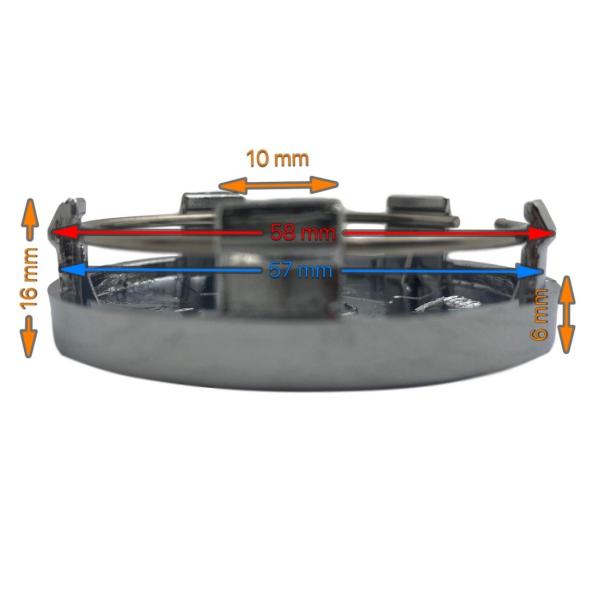 サイズ:外径60mm 高さ16mm 内径 爪中58mm(掲載写真、赤線) 爪元57mm(掲載写真、青線)