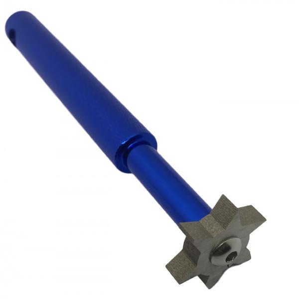安全の為クラブを万力で固定し溝クリーナーを水平に当て、最初はあまり力を入れないようにゆっくりと確実にスライドさせます。