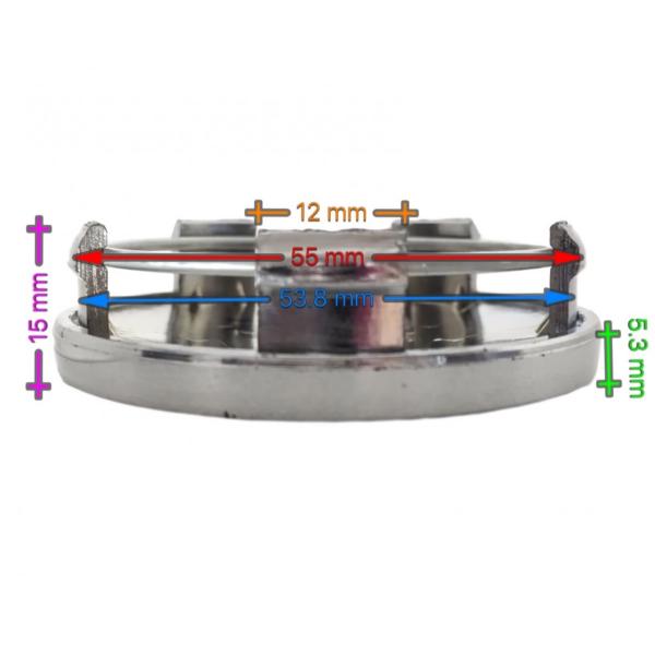 サイズ:外径58.5mm 高さ15mm 内径 爪中55mm(掲載写真、赤線) 爪元53.8mm(掲載写真、青線)