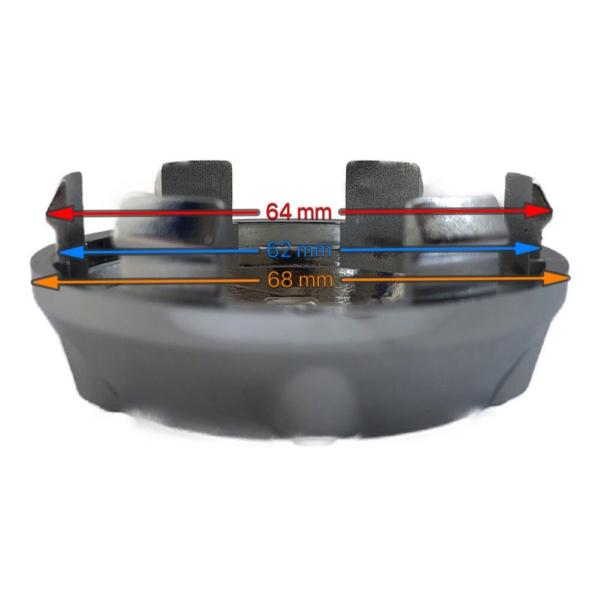 サイズ:外径約68mm 内径 (写真赤線)約64mm 爪元(写真青線)約62mm 高さ約29mm
