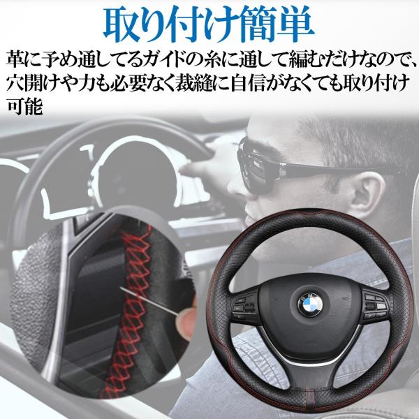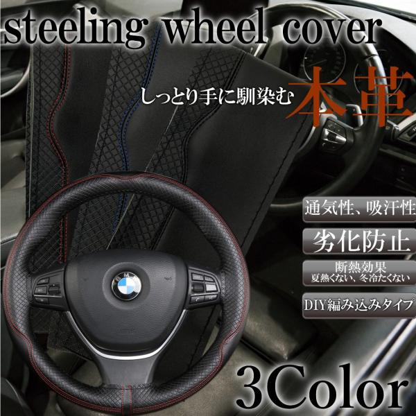 ハンドルカバー 編み込み式 ステアリングカバー 本革 編み込み 37cm 38cm