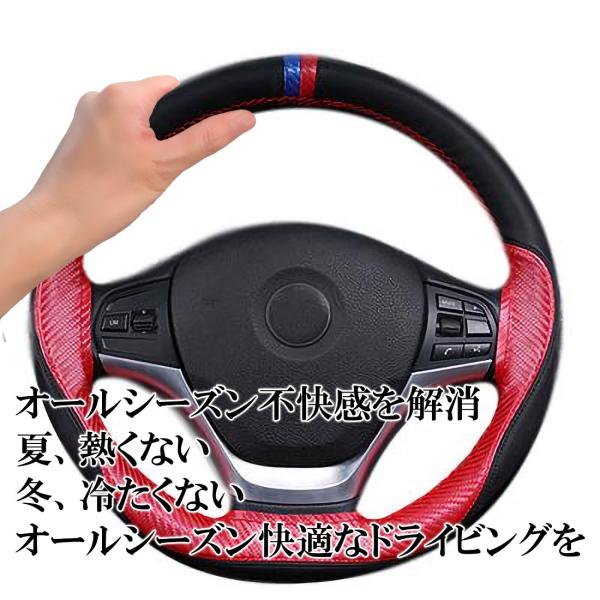 ハンドルカバー ステアリングカバー カーボン 編み込み 編み込み編み込み式 リアルカーボン 普通車 軽自動車 37cm 38cm 送料無料
