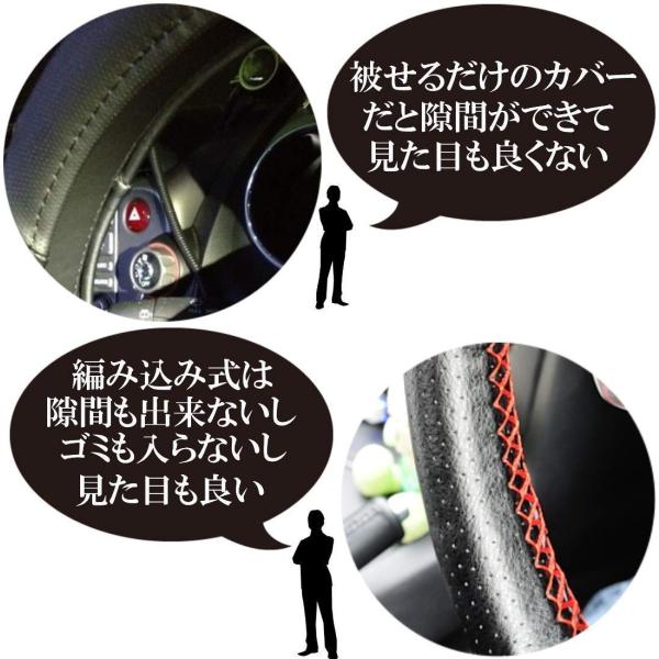 ハンドルカバー 編み込み ステアリングカバー 車 本革 牛革 編み上げ 手縫い タイプ レザー ステアリング 軽自動車 普通車 乗用車 内装 おしゃれ 革巻 S M L