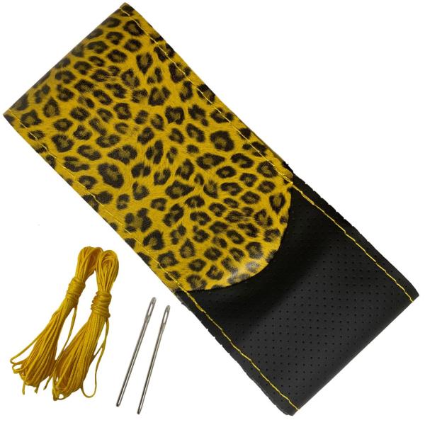 ハンドルカバー ヒョウ柄 編み込み式 普通車 軽自動車 37cm 38cm 送料無料