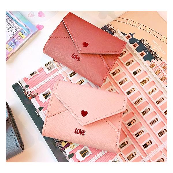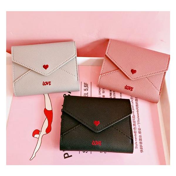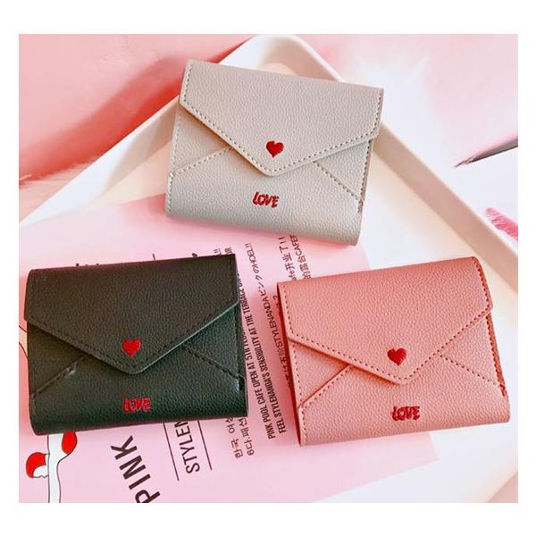 財布 レディース 三つ折り 韓国 ミニ ハート カード入れ