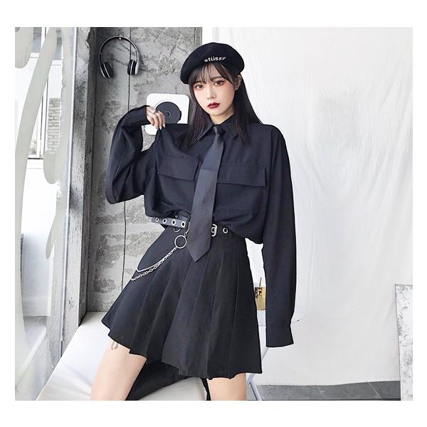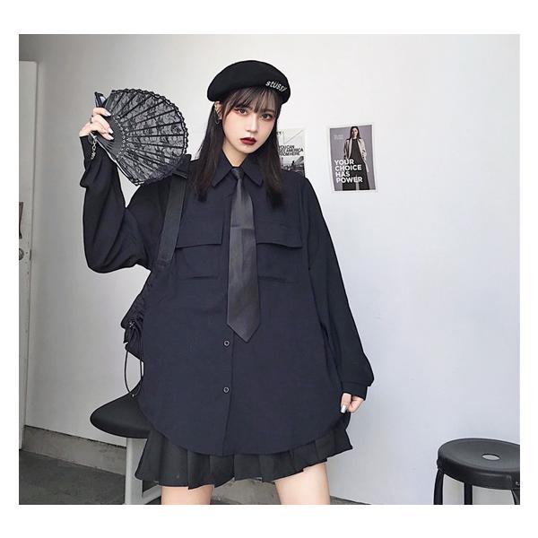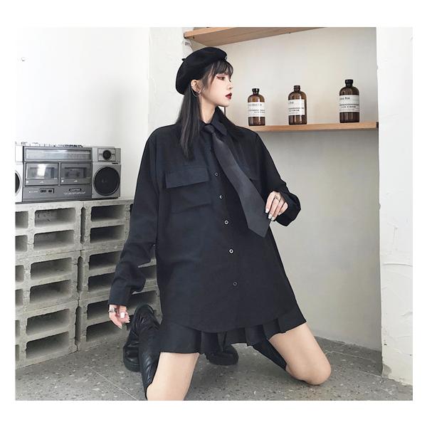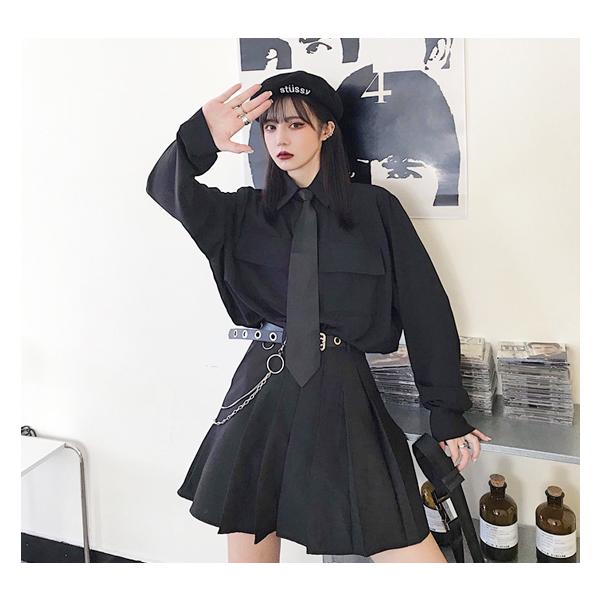 黒 シャツ ネクタイ レディース モード系 ゴシック ゴスロリ 病みかわいい 韓国