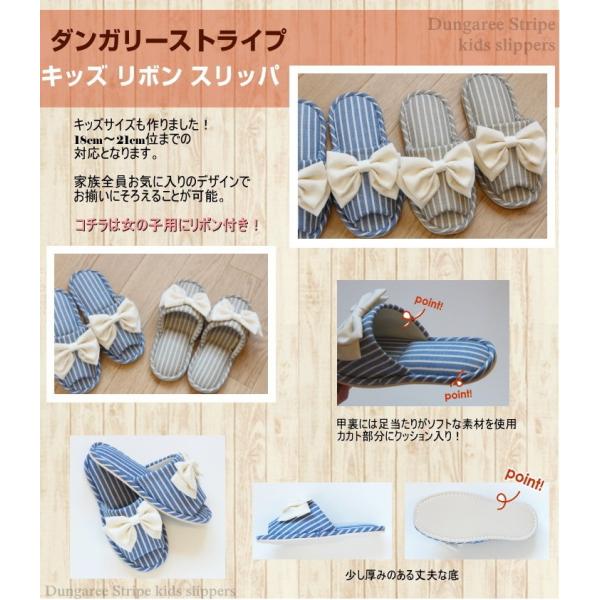 スリッパ 子供 リボン ダンガリーストライプ キッズリボン 18〜21cm