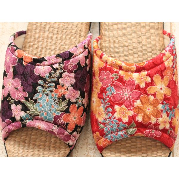 色鮮やかなちりめん生地がとってもきれいな和柄スリッパです