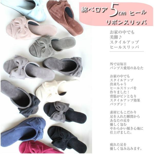 スリッパ ヒールスリッパ ルームシューズ おしゃれ リボン かわいい 綿ベロア 5cm くすみカラー 携帯スリッパ ママコーデ S/M/L