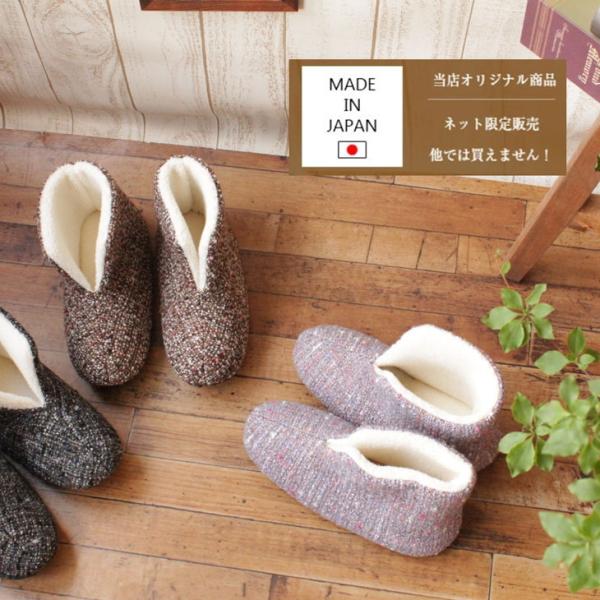スリッパ あったかブーツ 冬 室内 ルームシューズ あたたかい 足首を包むルームブーツ 洗える ツイードブーツ 日本製 お誕生プレゼント