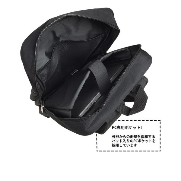 外部からの衝撃を緩和するパッド入りのPCポケットを採用しています