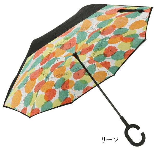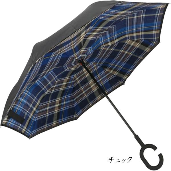逆さ傘 さかさま傘 ワンタッチ 大きい 3140 リバースアンブレラ 逆さま傘 C型手元 ハンズフリー 8本骨 親骨60cm ボーダー チェック ブラック リーフ