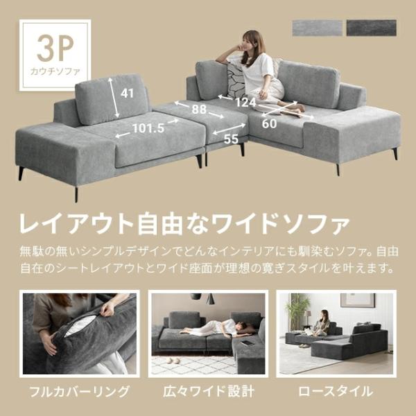 ソファー フルカバーリング ポケットコイル カウチソファ ソファ ソファーセット 洗える カウチソファー 3人掛け ローソファー フロアソファ
