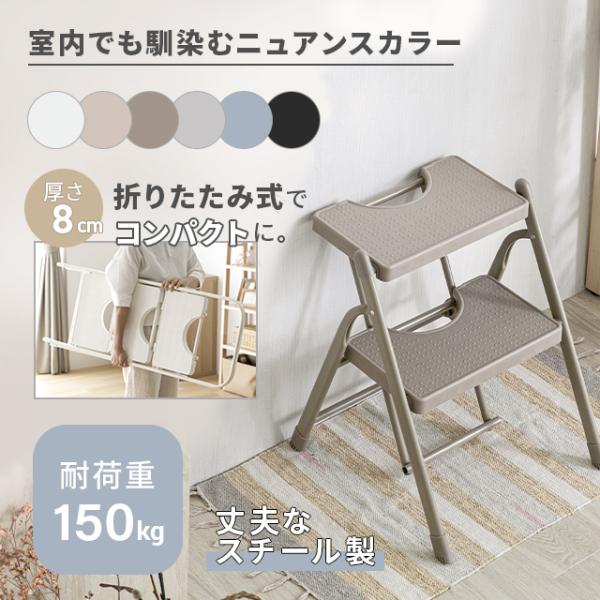 踏み台 脚立 折りたたみ おしゃれ 2段 オフホワイト ステップ台 ステップチェア 折りたたみステップ ステップスツール 大掃除 洗車台