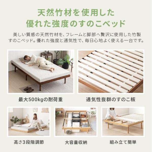 ベッド ベッドフレーム シングル すのこベッド シングルベッド 脚付きベッド 高さ調整 竹 無垢材 おしゃれ