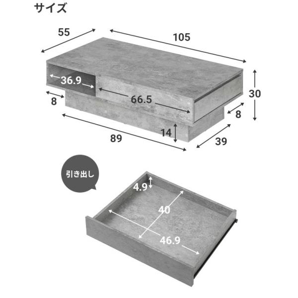 検索キーワード: センターテーブル テーブル ローテーブル 引き出し 幅105cm 奥行55cm 収納 収納付き モルタル調 長方形 収納テーブル リビングテーブル 机 デスク 一人暮らし 引出し付き 作業台 デスクワーク テレワーク 北欧 新生活
