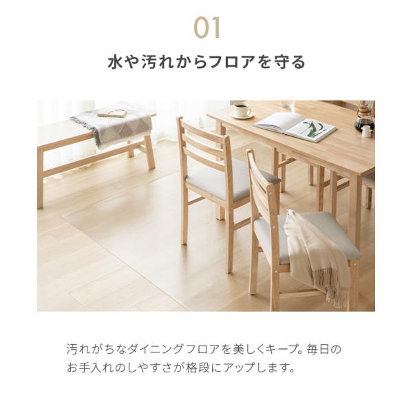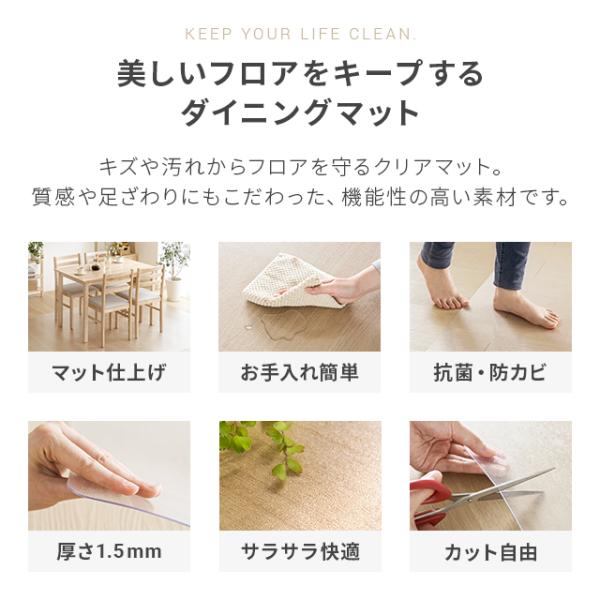 ダイニングマット 180×300cm 撥水 クリア 透明 防水 床暖房対応 抗菌 防カビ 厚さ1.5mm 透明マット キッチンマット 傷防止 チェア用床保護マット モダンデコ