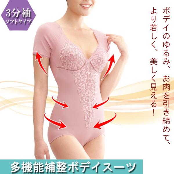 補正下着 シェイプウェア ボディスーツ コルセット 半袖 ノンワイヤー 大きい フルカップ 4L 送料無料