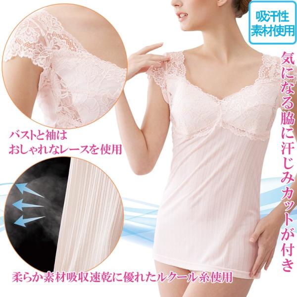 キャミソール インナー ランジェリー フレンチ 半袖 汗取り パッド 婦人 女性 下着 さらさら快適 ブラインナー メッシュ カップ 大きい サイズ 3L 4L 送料無料