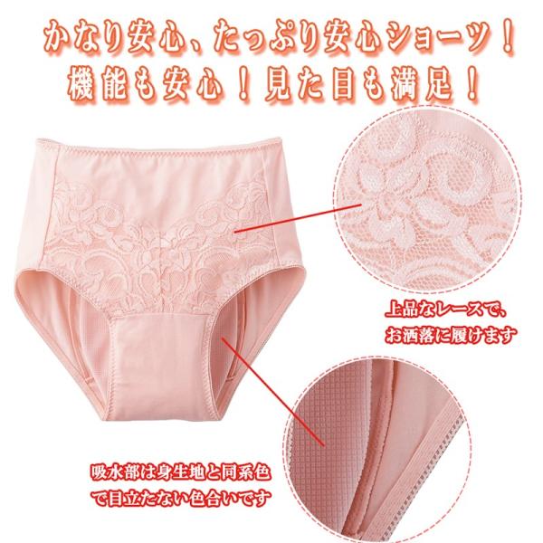 失禁 軽失禁 安心ショーツ 尿漏れパンツ 失禁パンツ 大きい サイズ 60cc おしゃれ レース 綿混さわやか 安心ショーツ 産後ケア 産後 お漏らし吸水 目立たない お母さん おばあちゃん プレゼント 母の日 スタンダード 尿漏れショーツ 漏れにくい 生理不順 更年期 冷え サポート 旅行 温泉 乾きやすい レディース 女性用 30代 40代 50代 60代 70代 80代