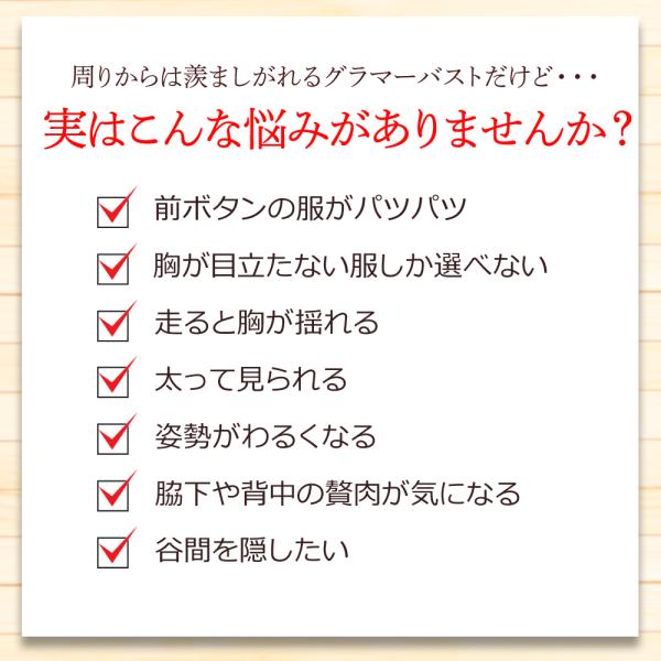 大きいバストをスッキリ見せます。ノンワイヤーで身体を締め付けずとてもラクな着心地です。