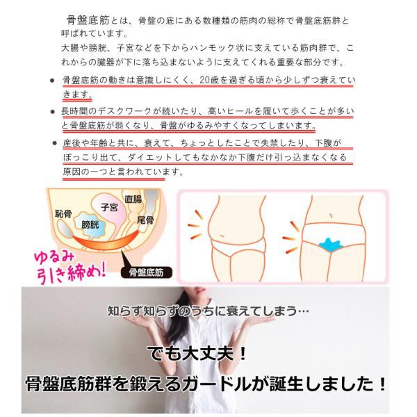 骨盤底筋を意識し、日常生活や通勤時などでトレーニングすればより効果的な結果が得やすくなる目的で開発された画期的なガードルです!