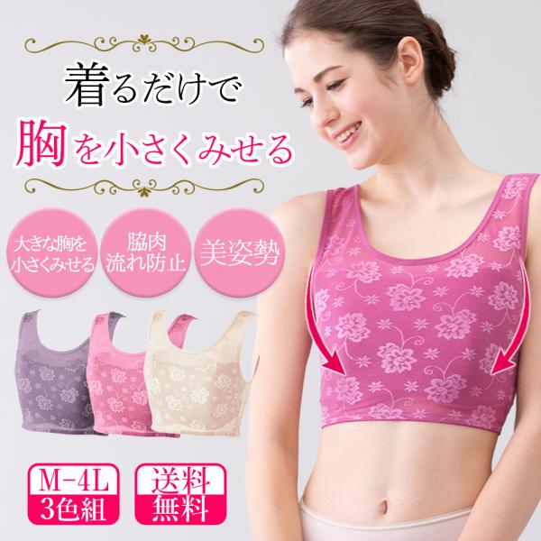 小さく見せる ブラ ブラジャー スリム ダイエット さらし 補正下着 ノンワイヤー 大きい サイズ M L LL 送料無料