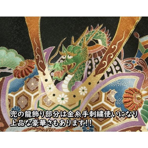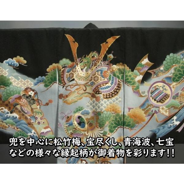 宮参り 着物 男 絹100% 正絹男児初着 黒 兜 松竹梅 金糸使い 赤ちゃん着物