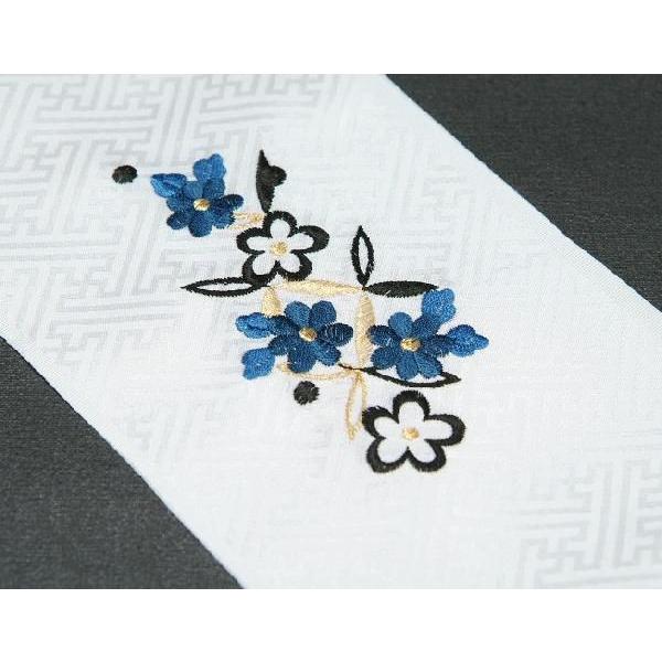 子ども用刺繍半衿 白 ブルー 黒柄 三歳 五歳 七歳 七五三着物などに最適 男の子に特にオススメです!