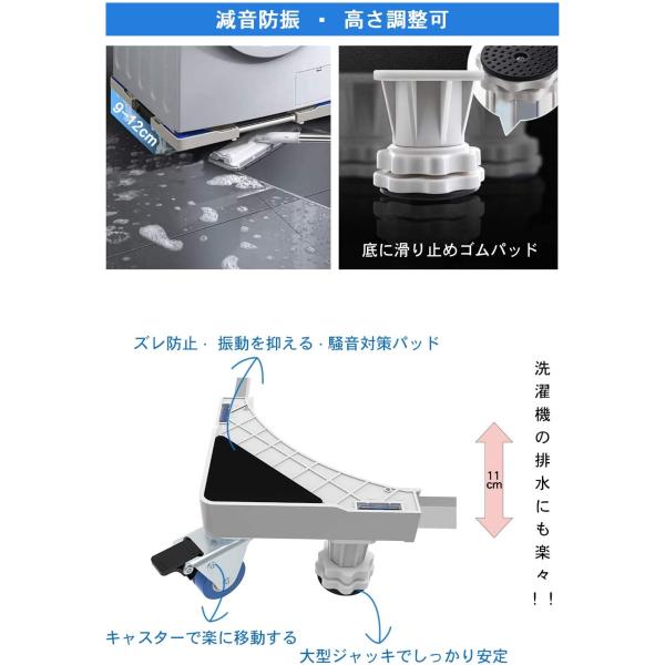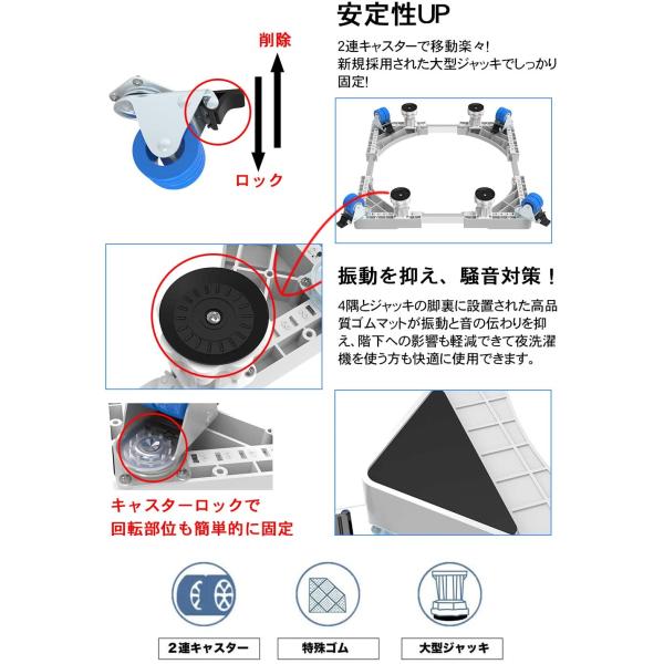 洗濯機台 キャスター付き 置き台 フットブレーキ付 かさ上げ台 台 簡単設置 簡単組み立て 工具要らず 防水 洗濯パン 台座 滑り止め 減音効果 水平器付