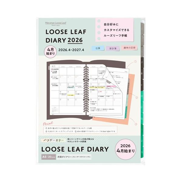 マルマン 2026年 4月始まり ルーズリーフダイアリー パウダーカラー 月間 〈A5〉