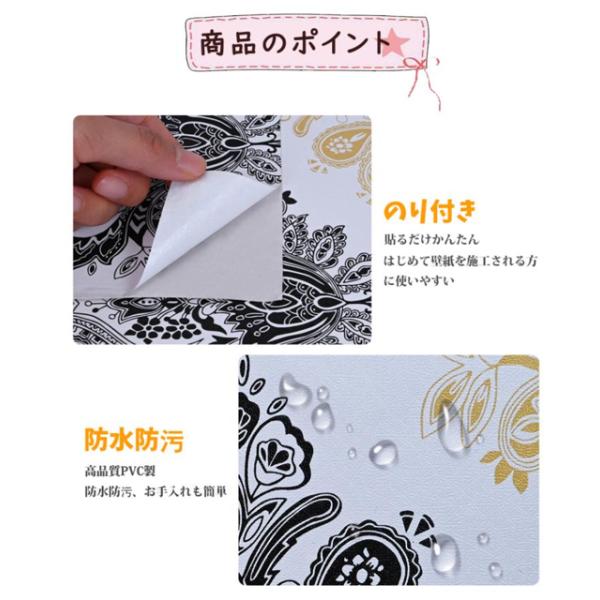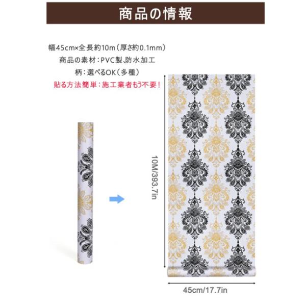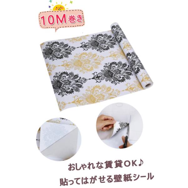 ダマスク柄 壁紙 リメイクシート 壁シール 45cm×10m 貼って剥がせる 賃貸OK のり付き クロス おしゃれ 防水加工 防汚 壁紙クロス 壁クロス