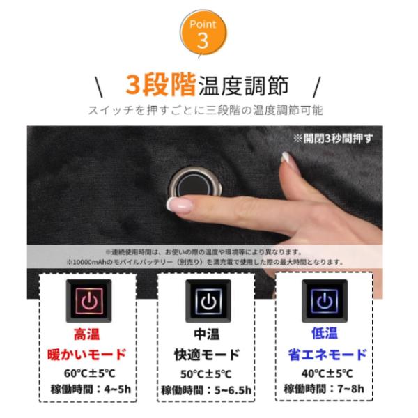【急速発熱保温安全】8個の加熱ヒーターは炭素繊維を採用して、他社のより更に発熱箇所が多くなり、より厚いので、急速発熱になり、熱が長く持続できます。安全性も耐久性もご安心。