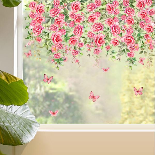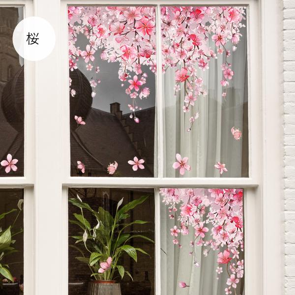 静電気ステッカー 窓ステッカー ピンク 花 藤 桜 窓 ドア 戸棚 浴室 ガラス かわいい 飾り 水で貼る 貼り直し可能 静電気シール インテリア おしゃれ
