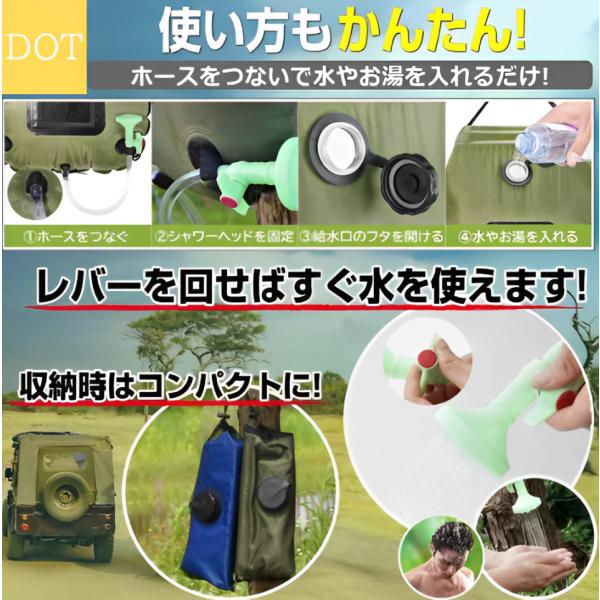 ポータブルシャワー キャンプ用 携帯シャワー 海 サーフィン 海水浴 釣り テント 簡易シャワー アウトドア ウォータータンク付き