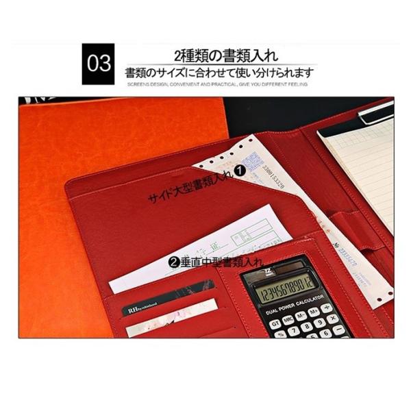 サイズ: 縦32.3cm×横24.7cm×厚さ2.5cm (折り畳み)[電卓ホルダー]約7cm×12cm 重さ:530g材質:PUレザー
