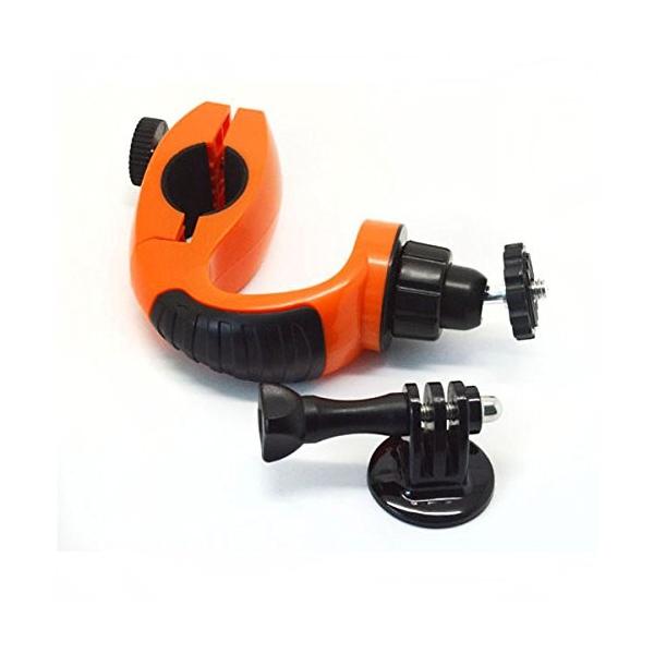 サイズ:(約) 14.6× 8 ×3.4(cm)取り付け対応バーサイズ:22.2-24mm(径)耐荷重:500グラムソケットサイズ:GoProアダプター ネジサイズ:1/4インチ材質:プラスチック/ステンレススチールカラー:オレンジ+ブラック