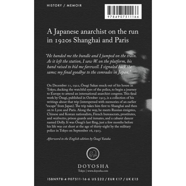 On December 11, 1922, 〓sugi Sakae snuck out of his house in Tokyo, ducking the watchful eyes of the police, to begin a journey to Europe to attend an international anarchist congress. This final work by 〓sugi, published in October 1923, is a collection of his writings about that trip (interspersed with memories of an earlier “escape” from Japan). The trip takes him first to Shanghai and then on to Lyon and Paris. Along the way, he meets Russian 〓migr〓es, Chinese and Korean nationalists, French bureaucrats, prostitutes, and midinettes, prison guards and inmates, and a cabaret dancer named Dolly. It was 〓sugi’s last fling, just a few months before his life was cut short at the age of thirty-eight by the military police in Tokyo on September 16, 1923.