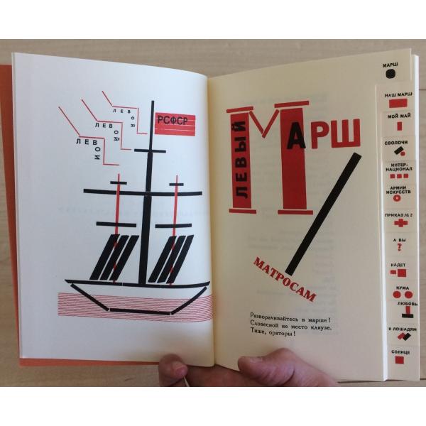 「詩とタイポグラフィを同等に扱い、一体にしようと試みた」とリシツキーの語るように、大胆な組版で視覚化されたマヤコフスキーの詩篇が読み手に大音声の音読をせまる。1923年春ベルリンで世に出た、タイポグラフィ史上に輝く傑作の復刻ファクシミリ版。国立マヤコフスキー博物館協力。