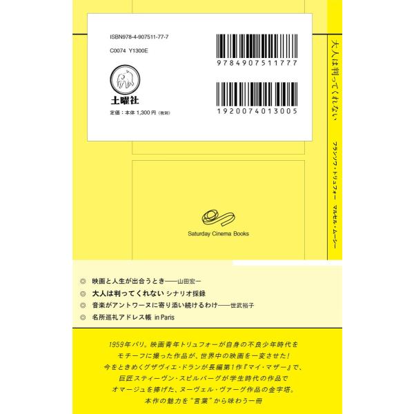 1959年パリ。映画青年トリュフォーが、自身の不良少年時代をモチーフに撮った作品『大人は判ってくれない』が、世界中の映画を一変させた! 今をときめくグザヴィエ・ドランが長編第1作『マイ・マザー』で、巨匠スティーヴン・スピルバーグが学生時代の作品でオマージュを捧げた、ヌーヴェル・ヴァーグ作品の金字塔。観る者をナイーヴな童心に帰し、魅了してやまない、優しくて力強い傑作青春映画だ。そんな本作の魅力を “言葉” から味わう一冊。