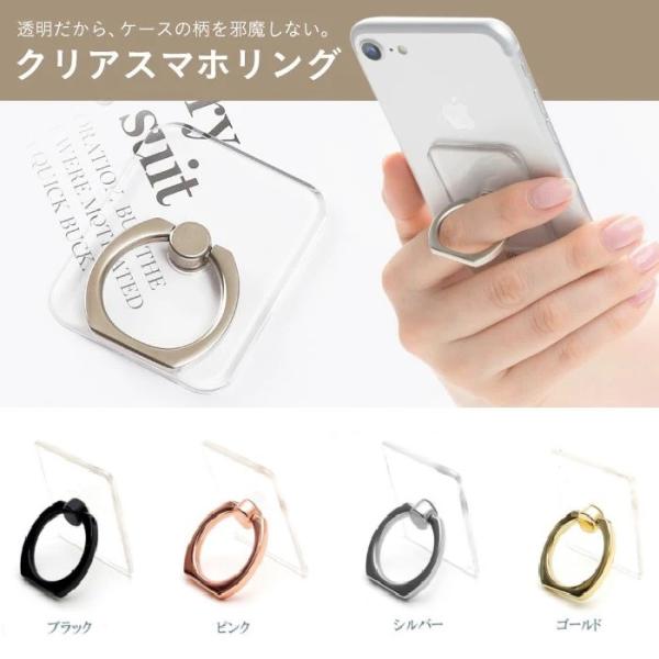 透明 スクエア スマホリング 落下防止 リング iPhone iPad スマートフォン タブレット スタンド 車載ホルダー 四角 クリア
