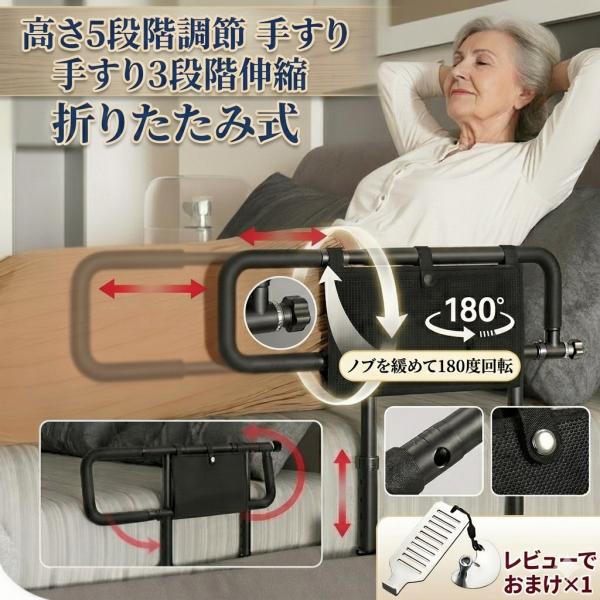 ベッド 起き上がり 手すり ガード 介護 床置きタイプ 後付け 柵 起き上がり ベッド柵用 落下防止 ワンタッチ サポート 大人 高齢者
