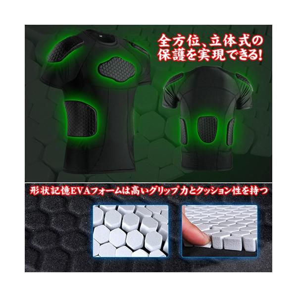 胸、肩、肋骨、腰椎部分にEVA耐衝撃クーション素材のパッドが入りますのでトレーニングする時、特にサカー或いはバスケットボールなどする時、衝撃防止でき、胸、肩、肋骨、腰椎をしっかりと守り、安定感を与えます;高いグリップ力とクッション性を持っていてスポーツ、トレーニングする時全方位、立体式の保護を実現できる。