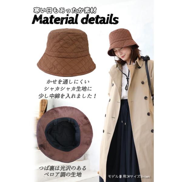 帽子 ハット バケットハット レディース キルトダウンハット バケハ あごひも付き サイズ調整付き 大きいサイズ ダウン キルト 防寒 秋冬 暖かい 大きい 耳 紐