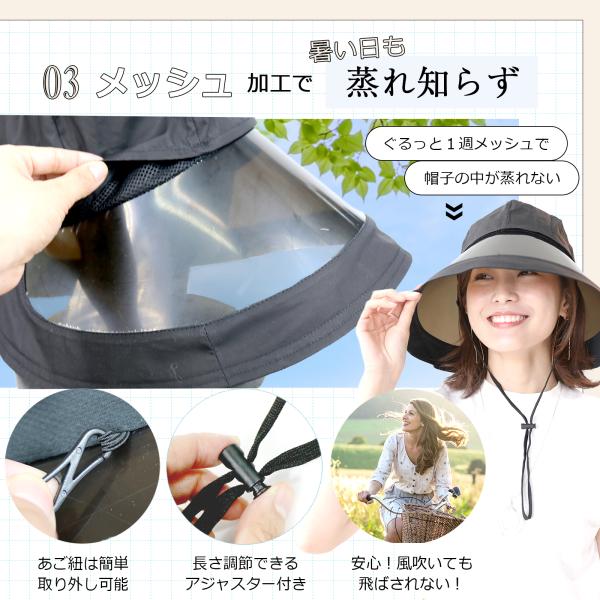 帽子 レディース ハット 春夏 UVカット UPF50+ 小顔効果 つば広10cm コットン 通気性 蒸れにくい 涼しい あご紐付き 大きいサイズ 折りたたみ 即日発送