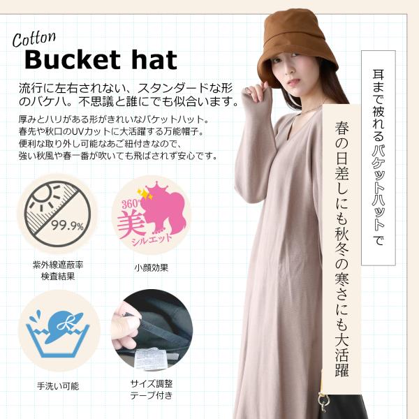 帽子 ハット レディース コットン小顔バケットハット バケットハット UVハット 紫外線 日よけ 防寒 すっぽり 小顔 サイズ調整 おしゃれ 秋 冬 UV帽子 可愛い